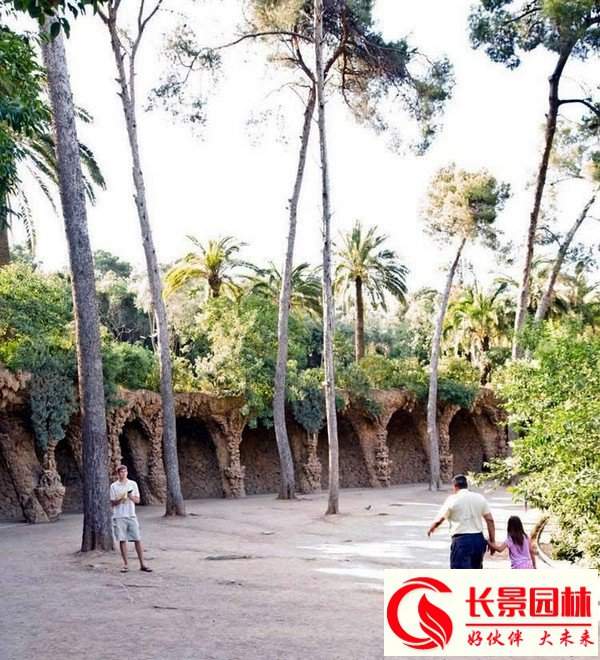 這里有堪稱是世界第一長度的座椅。長椅用石砌成,形似波浪蜿蜒曲折。表面用馬賽克碎片隨意拼貼,圖形各異且隱含寓意。長椅根據(jù)人體力學(xué)設(shè)計,靠