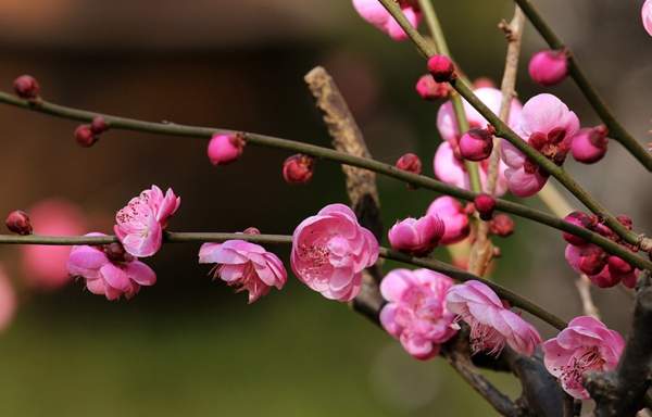 蠟梅的枝條一般都是比較直的;而紅梅有直枝也有垂枝。