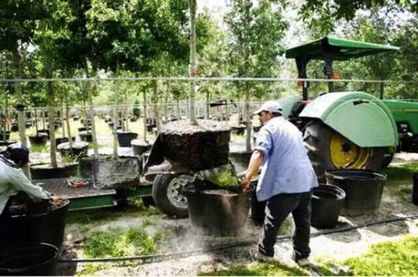 一、傳統(tǒng)的地栽土球苗B&B(BALL & BURLAP)。凡是把樹苗種在土中,移栽時(shí)挖起,運(yùn)走再栽植的苗木生產(chǎn)方式,在美國統(tǒng)稱為裸根種植法(BARE ROOT CULTURE)。要出售或施工時(shí),用人工或機(jī)器把樹苗挖出,再用一種類似于無紡布一類的材料(BURLAP)包裹起來,這種苗被稱為B & B(BALL & BURLAP)(注:BALL表示樹的土球,而BURLAP為無紡布)。